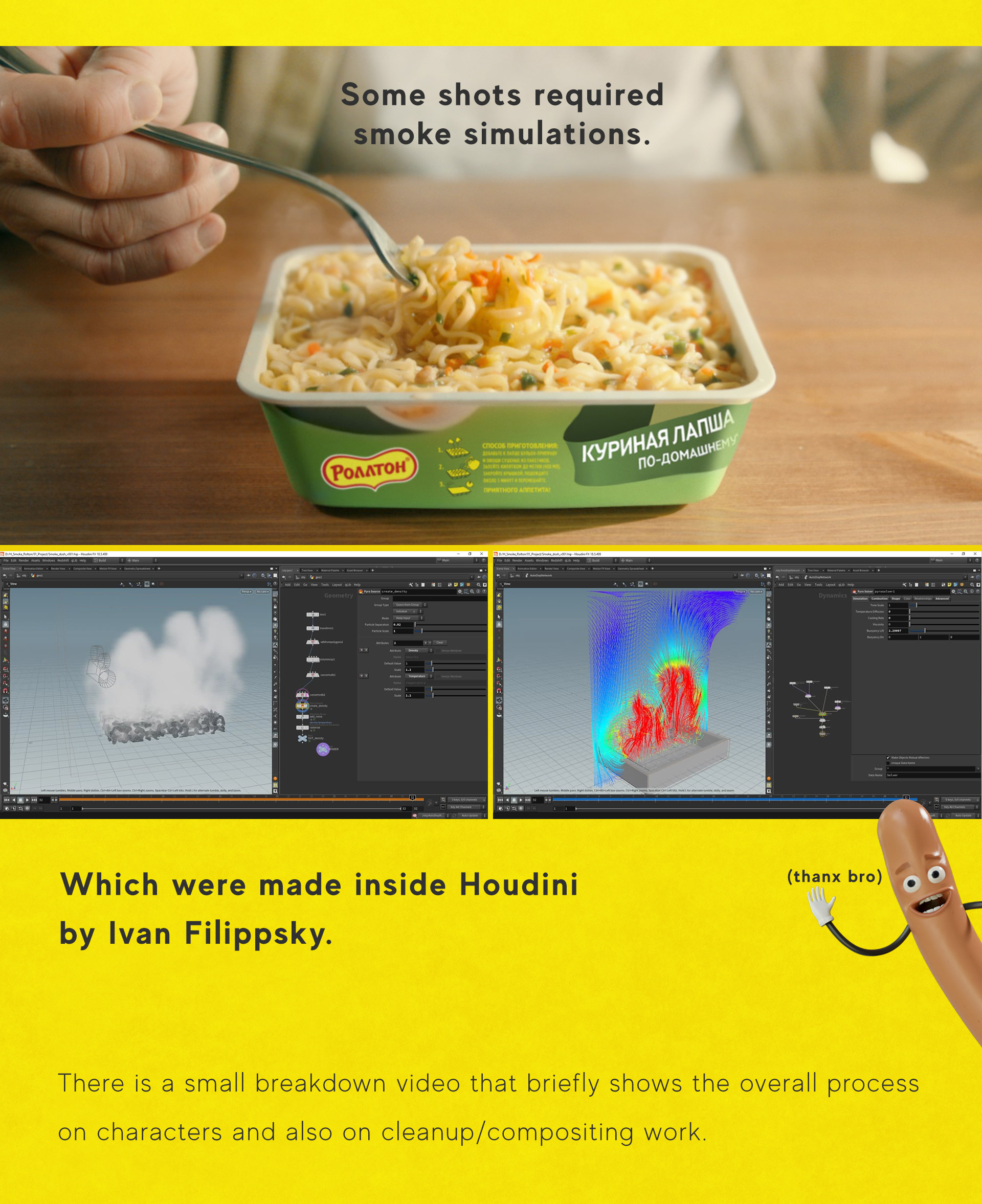 Rollton - Merging tastes TV commercial CG&VFX work by Dead Set. Credits in Russian: Роллтон Маректинг-директор: Илья Мышенко Бренд-менеджер: Екатерина Драндрова DADA Agency Директор по развитию бизнеса: Ольга Холодова Креативный директор: Pavel Ganin Старший аккаунт-менеджер: Masha Syrokvash Production: SPOT Production Генеральный продюсер: Михаил Маризов Исполнительные продюсеры: Дима Жуков и Митя Рафиков Ассистент продюсера: Валерия Моргунова Пост-продакшен продюсер: Katya Blinova Режиссёр-постановщик: Эрик Шарифуллин Тейблтоп студия: Chilli Films Фуд-стилист: Вячеслав Аратов Оператор-постановщик: Давид Хайзников Художник-постановщик: Варужан Ганджумян Директор группы: Дмитрий Зебзеев Второй режиссер: Венков Андрей Композитор: Георгий Химорода ЦК: Николай Вавилов Компьютерная графика: Александр Санакоев Монтаж: Анатолий Билецкий Кастинг: Тима Носков Художник по костюмам: Анастасия Суханова Мейкап: Анастасия Кукушкина